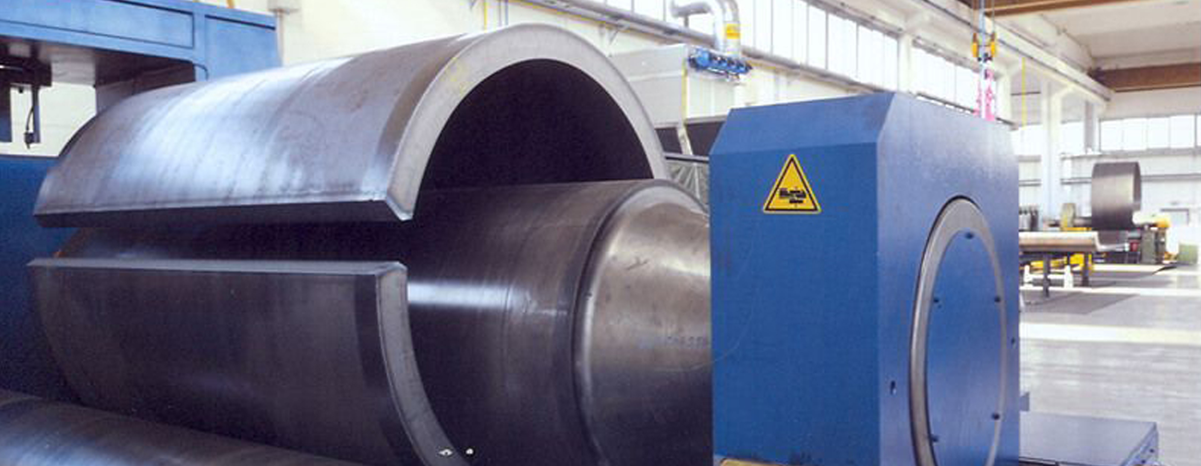 對(duì)稱式三輥卷板機(jī)是一種基于液壓伺服控制的高精度金屬成形設(shè)備。該設(shè)備通過(guò)協(xié)調(diào)三個(gè)輥輪的運(yùn)動(dòng),使金屬板材產(chǎn)生連續(xù)的塑性變形。